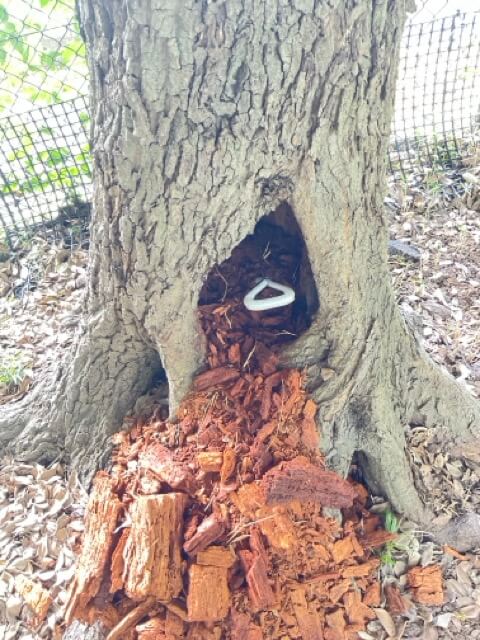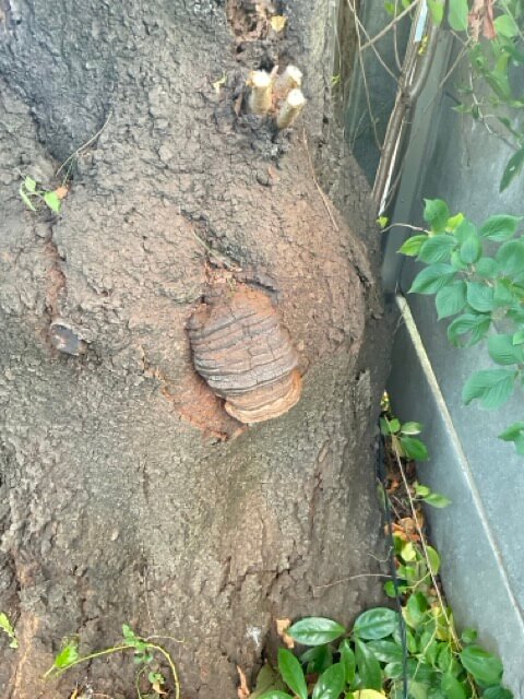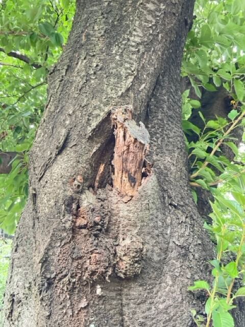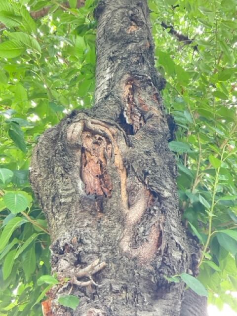 活⼒が健全に⾒える樹木でも、樹幹内部や根株に極めて危険な空洞や腐朽を内在している場合があることから、幹の形状などを注意深く観察します。